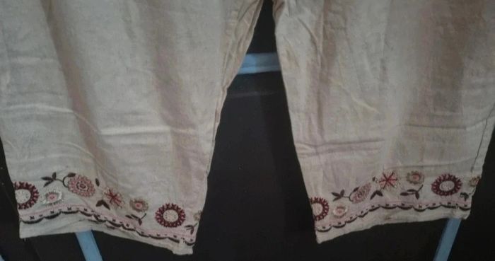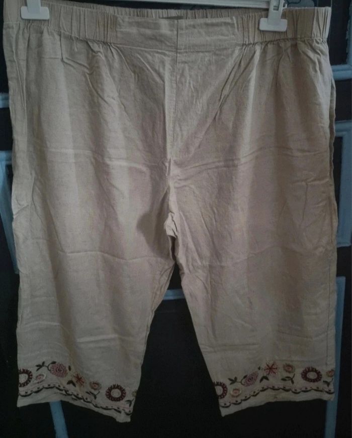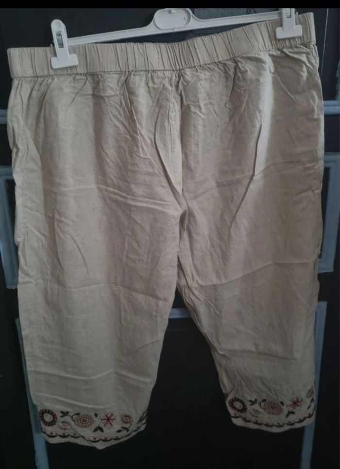 Pantacourt style hippie léger et agréable, taille 54 marque Fashion, longueur 78cm, largeur de la taille 51cm jusqu'à 55cm, largeur cuisse 39cm, largeur du bas 24cm ,couleur crème.