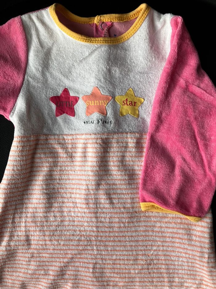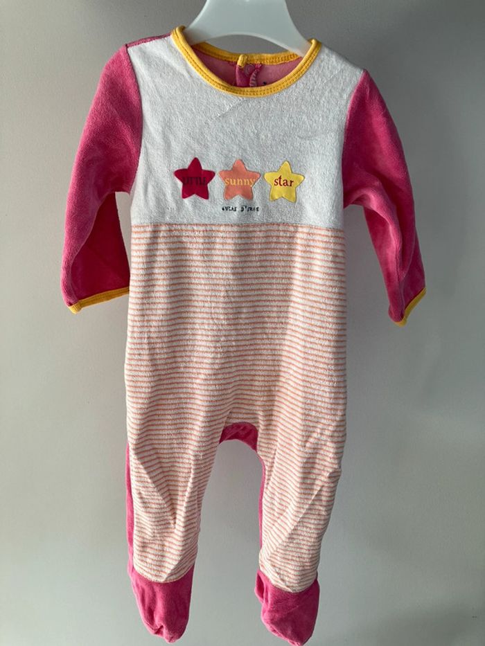 Dors bien rose, avec boutons pression à l’arrière, 75% coton 25% polyester, de marque Sucre d’orge, taille 12 mois Bon état