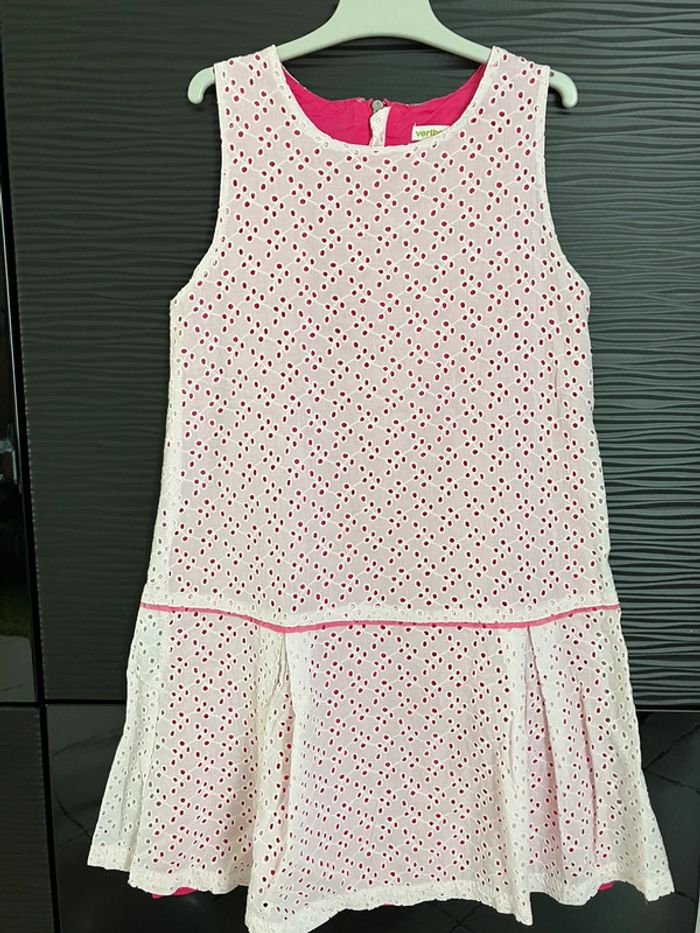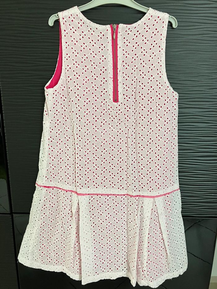 Robe rose foncé en doublure et rose pale ajourée, avec fermeture éclair dans le dos, 100% coton, de marque Vertbaudet, taille 10 ans Très bon état