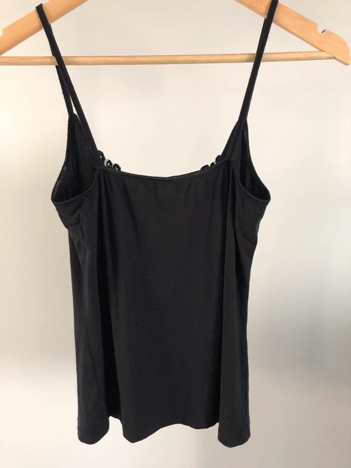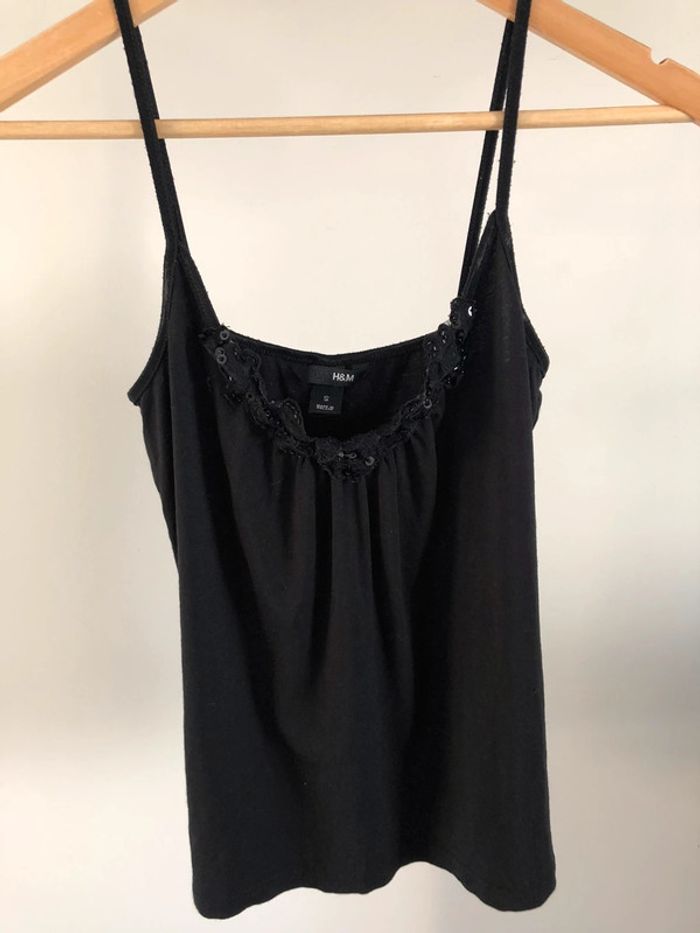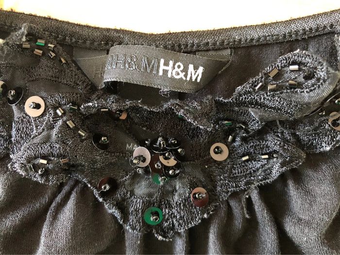 Caraco noir encolure fantaisie avec sequins perles et dentelle, de marque H&M, taille S Bon etat