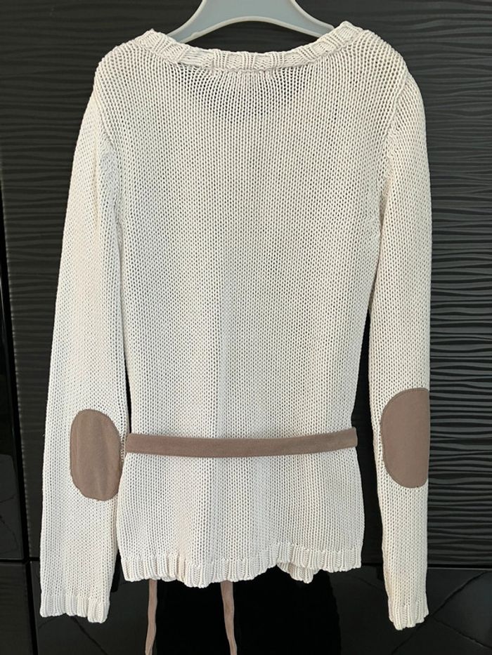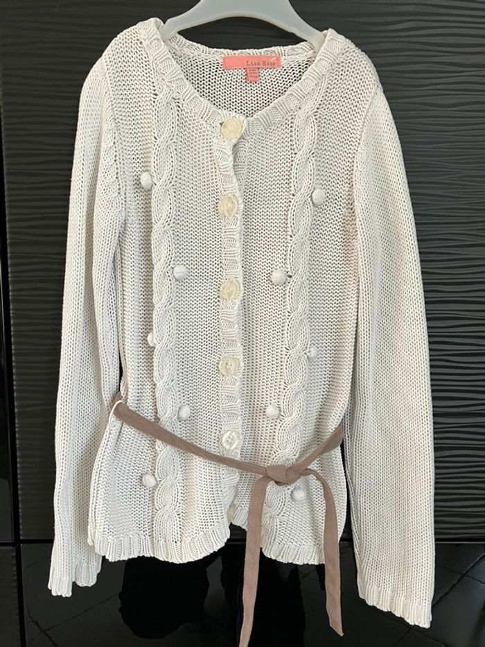 Gilet long blanc avec boutonnière, ceinture et coude marron, 100% coton, de marque Lisa Rose (Z), taille 6 ans (114 cm) Très bon état