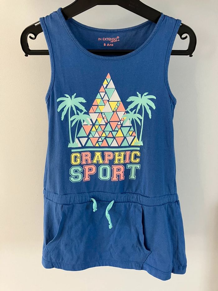 Robe bleue d’été sans manche, In extenso sport, taille 8 ans