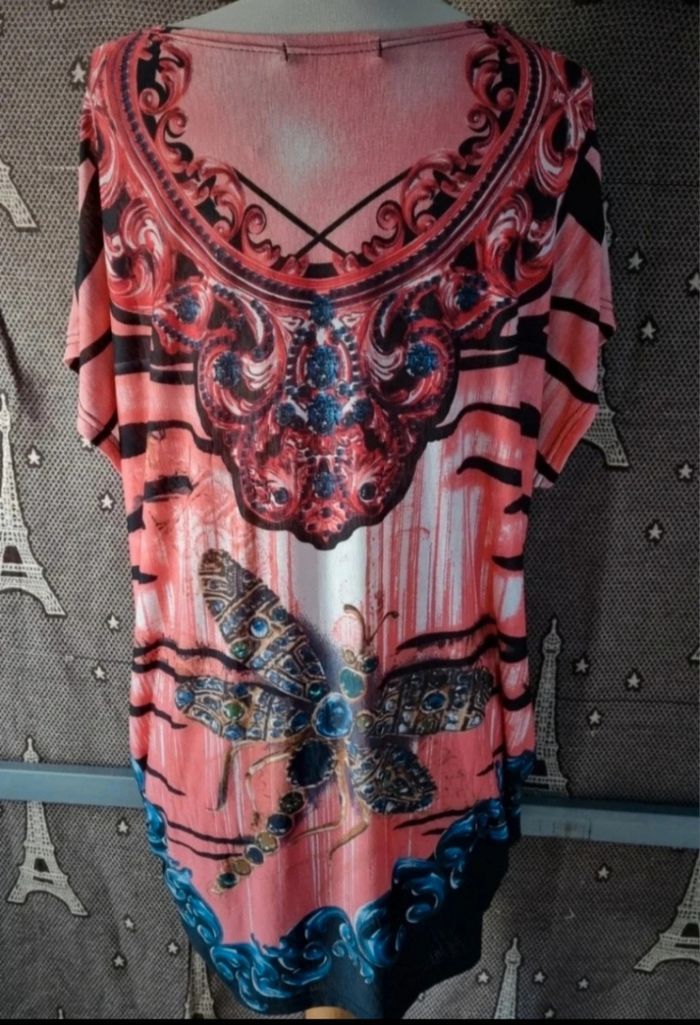 T-shirt léger rose imprimé libellules avec strass taille 44-46 - photo numéro 2