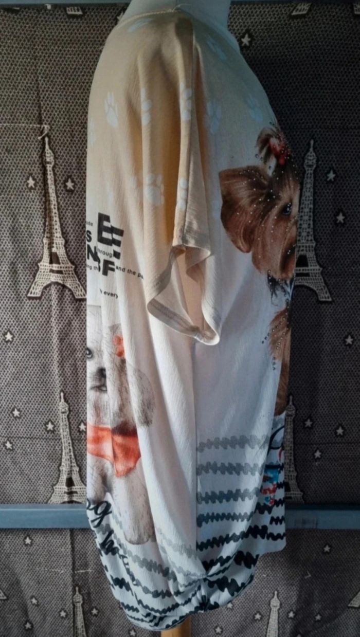 T-shirt léger imprimé chiens avec strass taille 44-46 - photo numéro 5