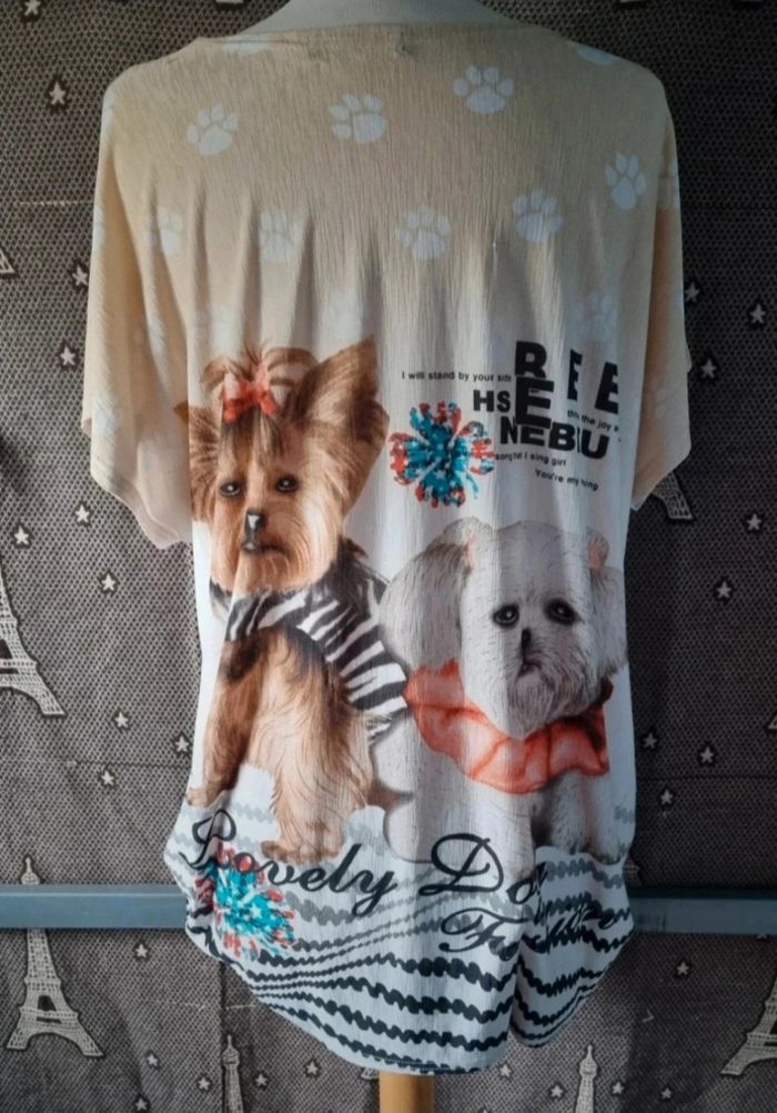 T-shirt léger imprimé chiens avec strass taille 44-46 - photo numéro 2