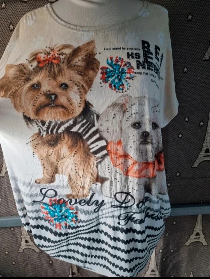 T-shirt léger imprimé chiens avec strass taille 44-46 - photo numéro 1