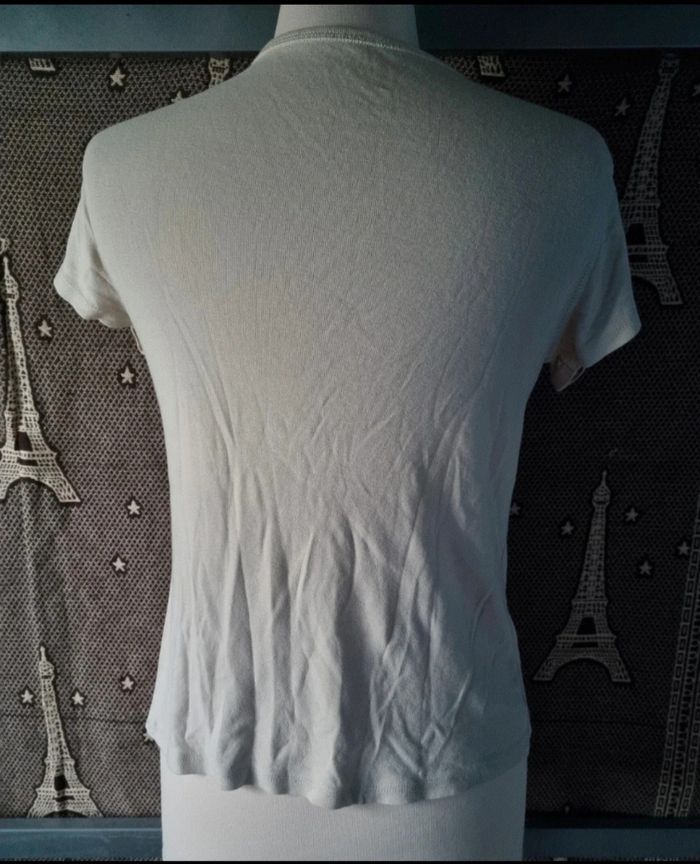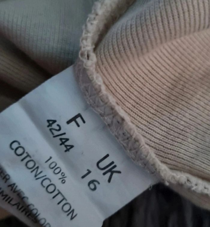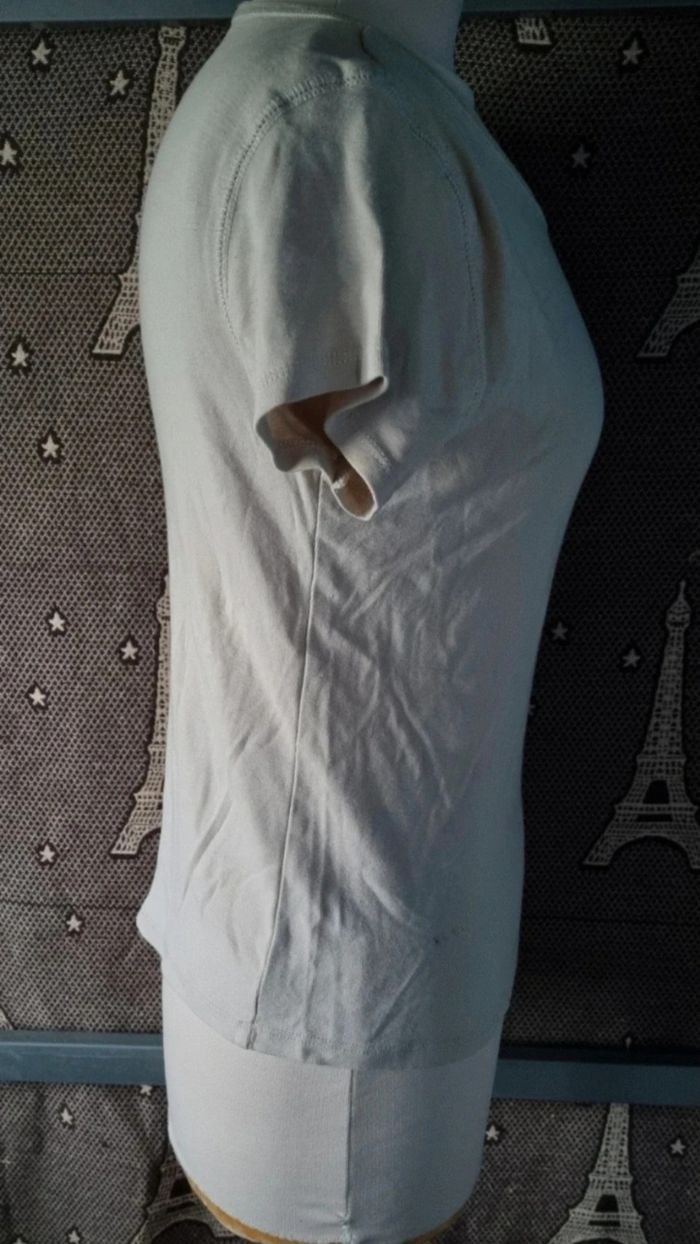 T-shirt beige taille 42-44, longueur 55cm, largeur 42cm,longueur épaule à aisselle 16cm, largeur aisselle à aisselle 41cm,taches voir photos.