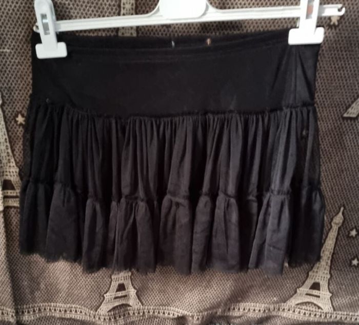Jupe noir taille 34 ,longueur 34cm, largeur de la taille 34cm jusqu'à 36cm.