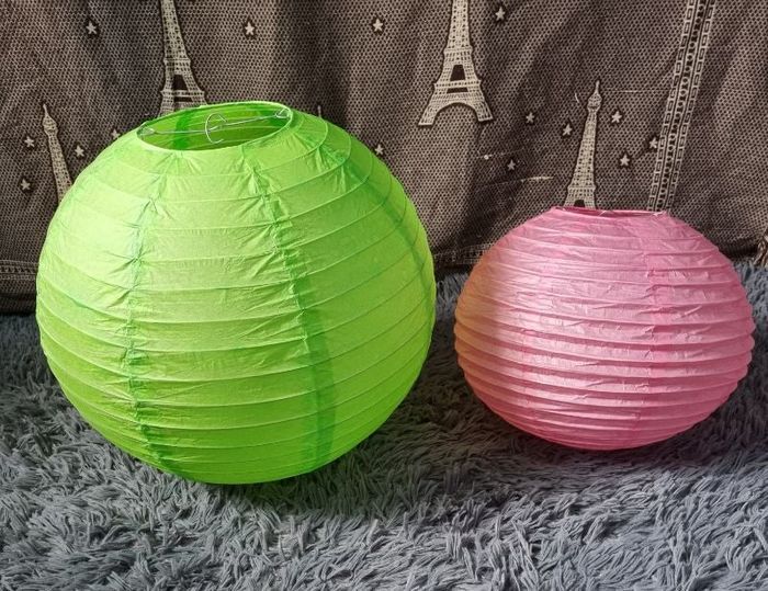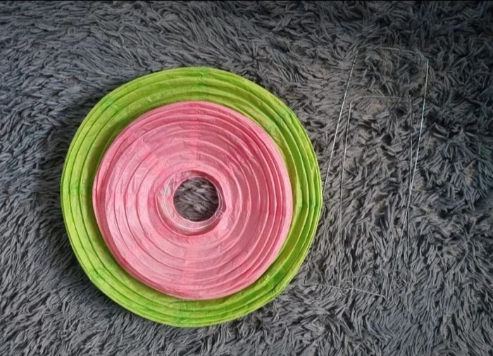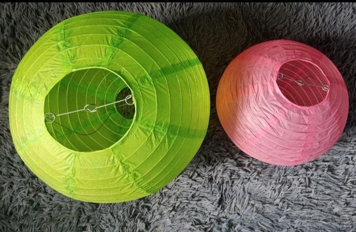 Lanterne décorative en papier, Vert:hauteur 48cm, largeur 123cm,léger défaut voir photos, Rose:hauteur 34cm ,largeur 95cm, (mesures approximative).