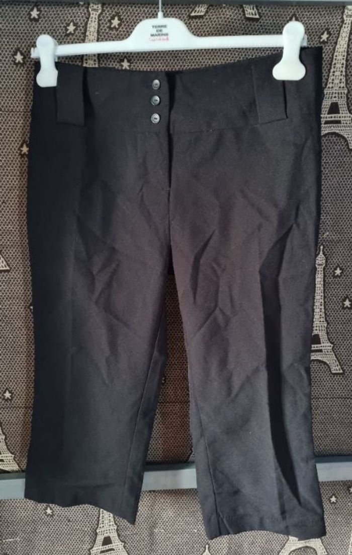 Pantacourt noir, taille 42 marque Ici&Maintenant, fermeture zippée avec boutons, longueur 74cm, largeur de la taille 43cm, largeur cuisse 26cm.