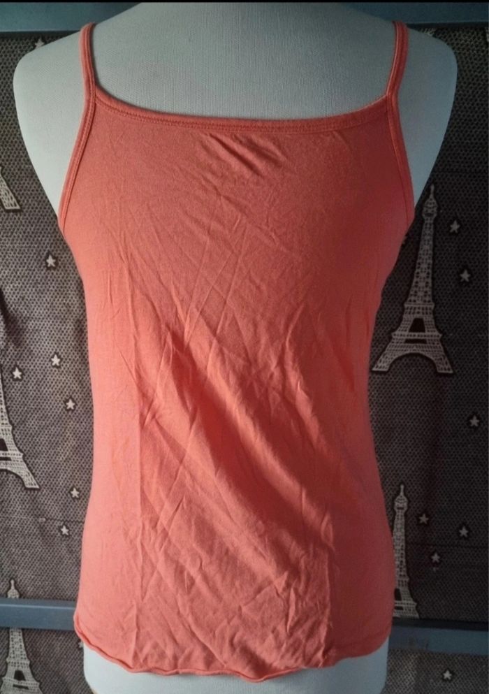 Débardeur à bretelles, taille M marque Kiabi, longueur 57cm (avec bretelles), largeur 41cm,longueur épaule à aisselle 18cm, largeur aisselle à aisselle 44cm,la couture est défaite en bas voir photos.