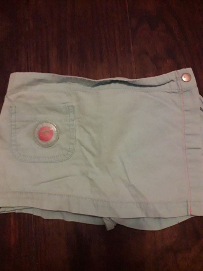 Bouton pression pour fermer la jupe. Fermeture éclair pour fermer le short