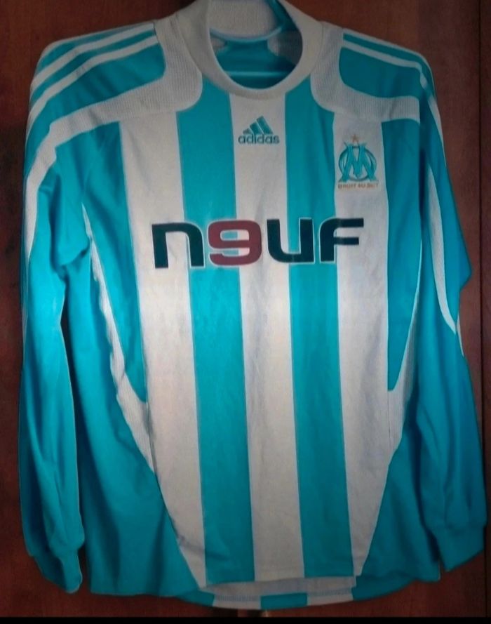 Lot pull Adidas X Marseille 2007-2008 vintage,longueur 76cm,largeur épaule à épaule 54cm,largeur 57cm, longueur épaule à aisselle 27cm, longueur manche 71cm,2 mini tache voir photo, Écharpe Olympique de Marseille.