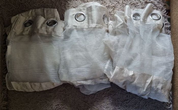 Lot 3 voilages, hauteur 2m42,largeur 138cm,100%polyester,léger défaut voir photos.