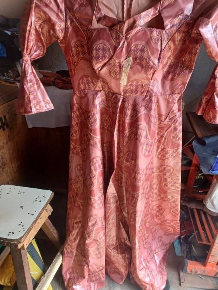 Robe femme bazin tissus super fanga j'en est plus en stock avec le même tissus des modèles fille et garçon et homme sont disponibles pour assortir toute la famille pour plus d'info n'hésitez pas pour la couleur j'ai mis orange mais c'est du corail