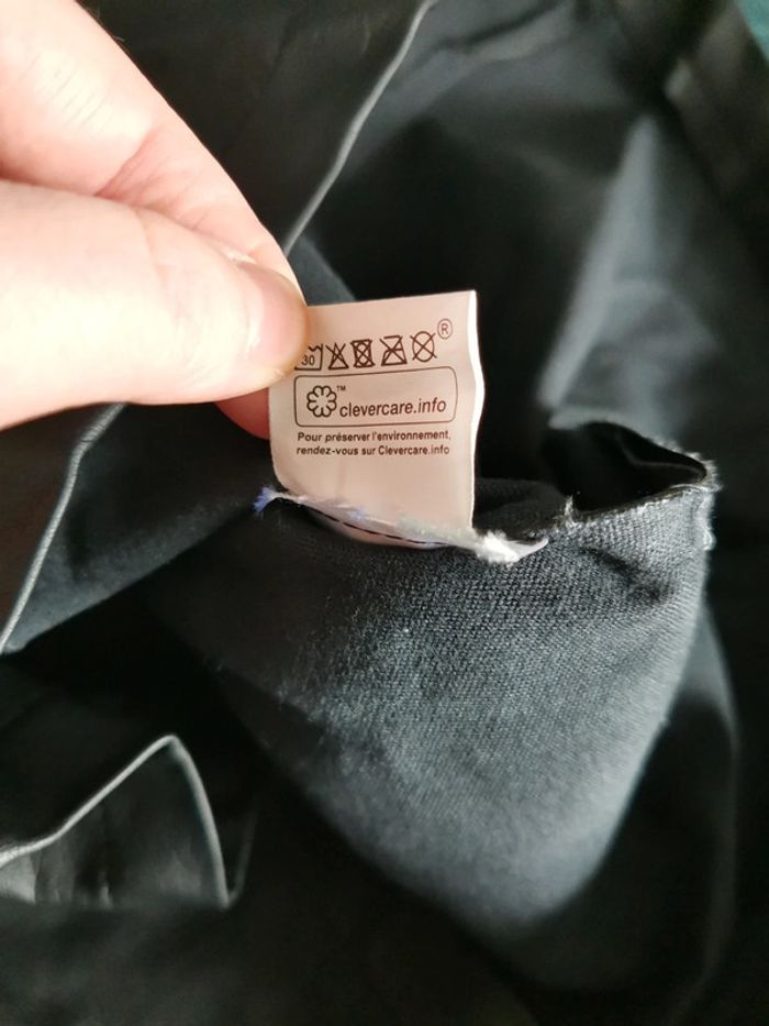 Mini jupe simili cuir noire taille 42 élastique a la taille avec pression devant. Elle était pliée désolée. En super état. Longueur 45 cm