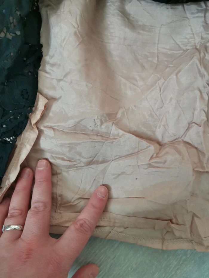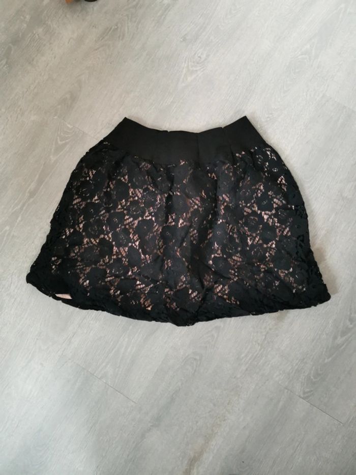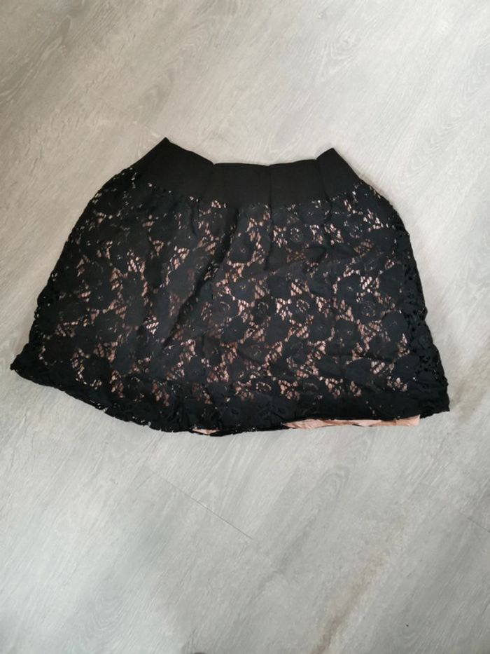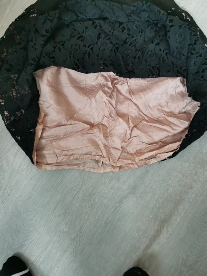 Petite jupe taille L élastique a la taille Petit défaut sur la sous jupe mais ne se voit pas du tout avec la dentelle au dessus Désolée pas repasser Longueur :42cm