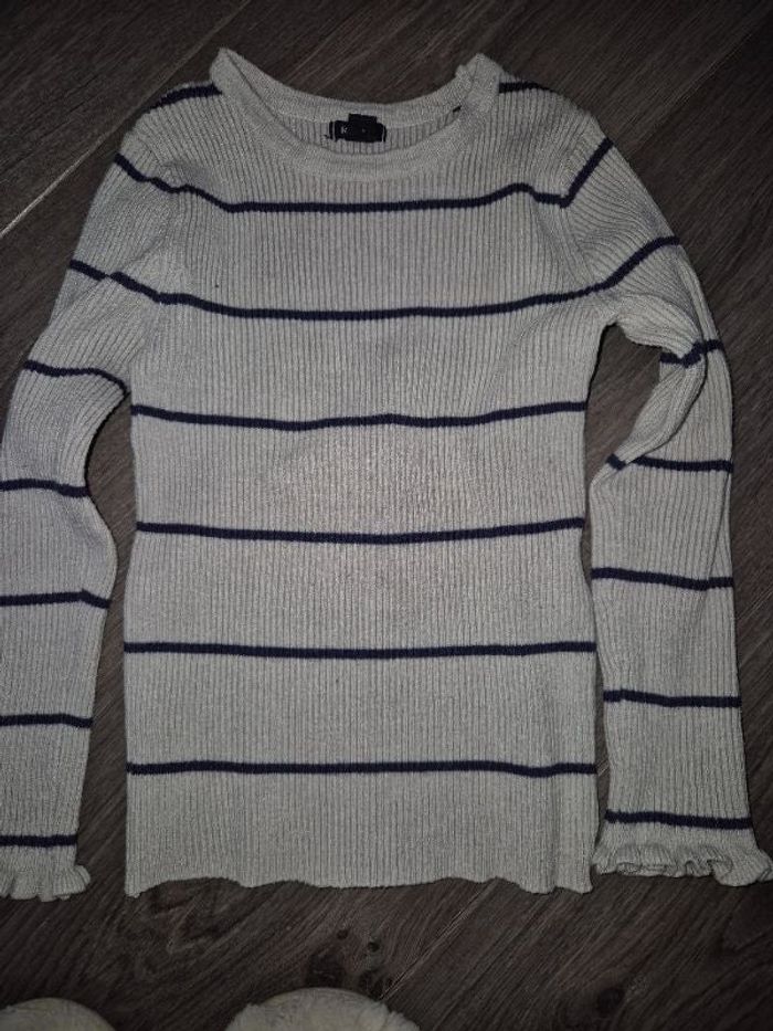 Vend pull fille Blanc avec rayures bleu Taille 4 ans Kiabi
