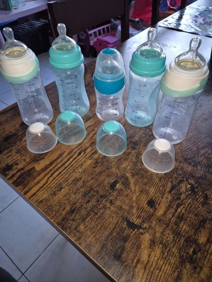 Vend lot de 4 grand biberon et 1 petit Vendu avec tétine possible à changer jamais utilisé. Bébé confort