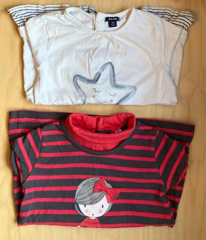 Lot 2 tuniques mi saison manches longues taille 18 mois (77-82 cm) en parfait état des marques diverses #