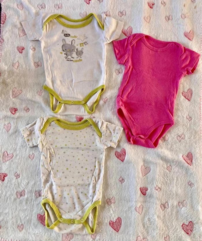 6 mois - lot 3 bodys manches courtes - photo numéro 2