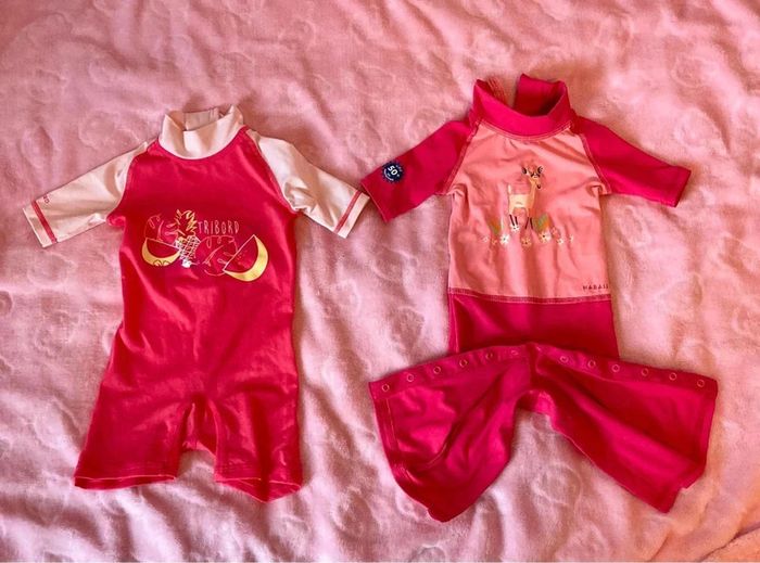 Bonjour Je mets en vente ce lot de 2 maillots de bain/combinaison anti uv taille 18 mois en parfait, état des marques, naibaiji et tribord #lgfamille18mois