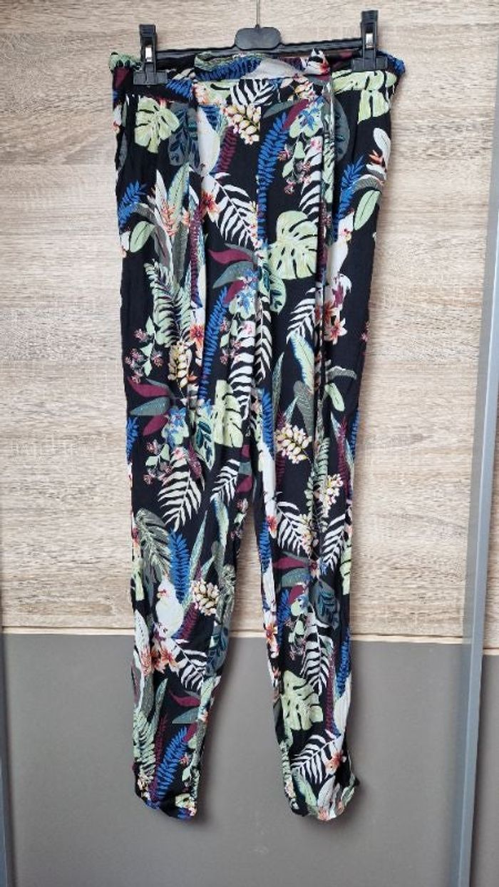 Pantalon taille M en très bon état. Petit fil tiré à l'avant, se voit à peine avec les motifs. Taille élastique. Comporte 2 poches. #lilieerostaille38