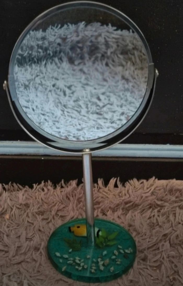 Miroir sur pied à posé style Marin,hauteur 35cm, miroir 16x16cm.