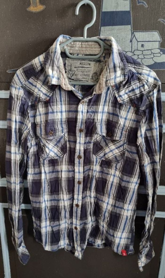 Chemise à carreaux manches longues, taille M marque edc apparel,longueur 62cm, largeur 44cm, longueur épaule à aisselle 19cm, largeur aisselle à aisselle 47cm,longueur manche 47cm.