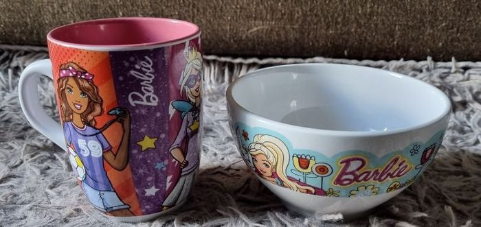 Lot vaisselles Barbie ,tasse et bol comme neuf.