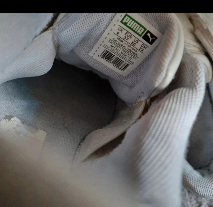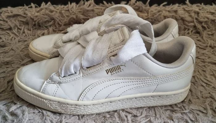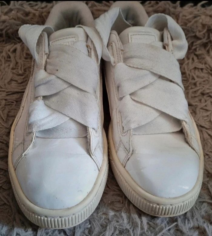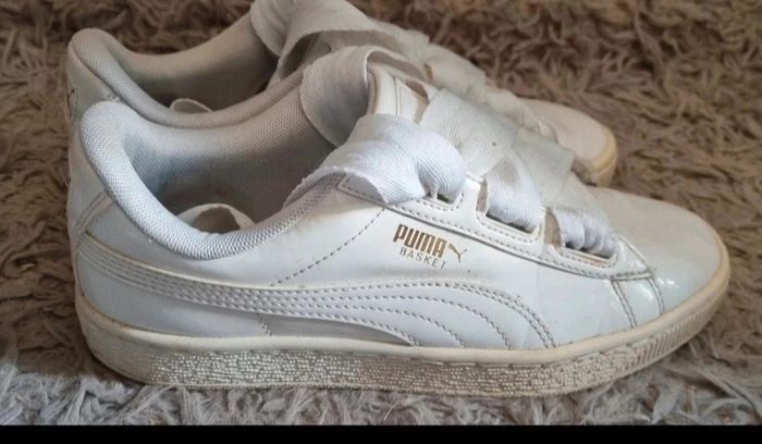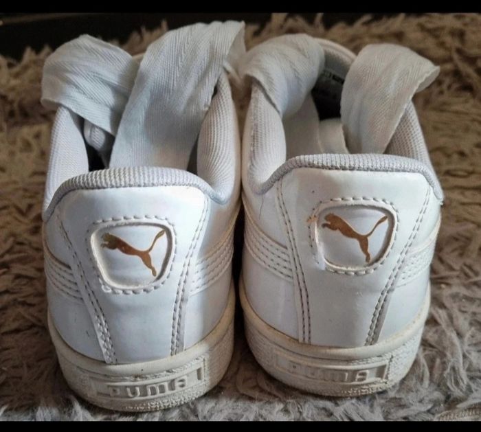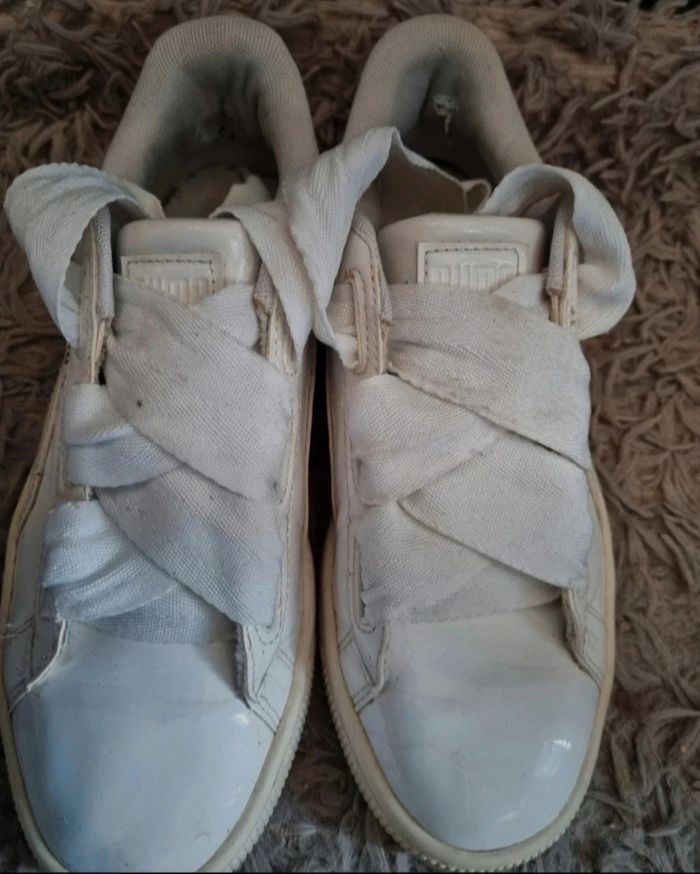 Basket blanche Puma heart pointure 37 lacet ruban,légèrement usé à l'intérieur voir dernière photo, lacet à détachée,peu porté.