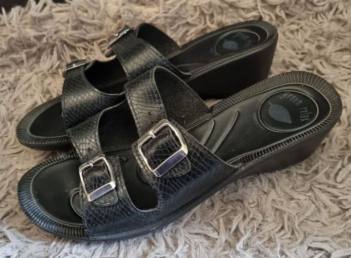 Sandales compensée noir, pointure 39 marque Green Relax,comme neuf porté 1-2fois,hauteur talons 6,8cm.