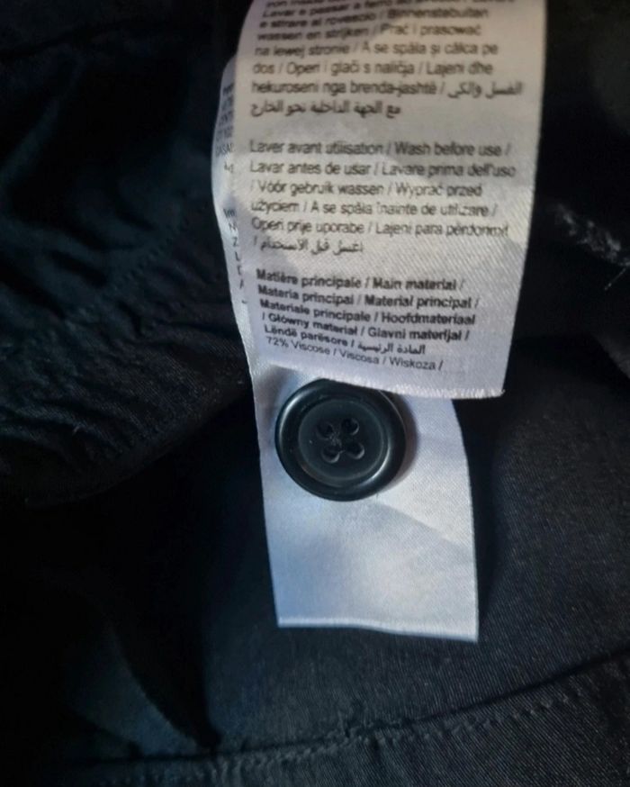 Pantacourt noir taille 54-58 marque Gémo, longueur 87cm, largeur de la taille 58cm, largeur cuisse 35cm, largeur cheville 20cm.