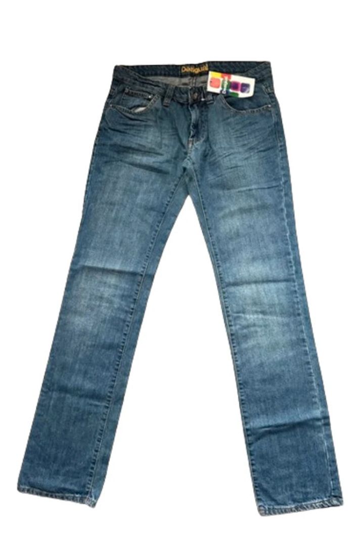 🤩 Jean NEUF DESIGUAL Une vraie splendeur comme toujours chez DESIGUAL !!! Se ferme par 1 bouton siglé DESIGUAL + 1 fermeture éclair 3 poches avant 2 poches arrière Surpiqûres contrastantes, coupe droite Patch logo en cuir Rivets pour ceinture Taille 40 Taille à plat 40.5 cm Longueur jambes : 108 cm entre jambes : 85 cm