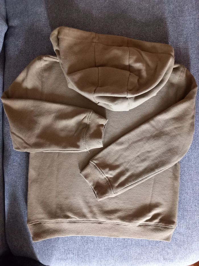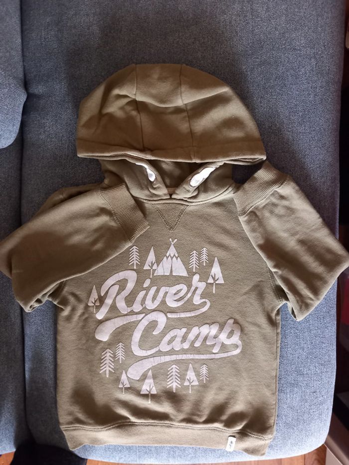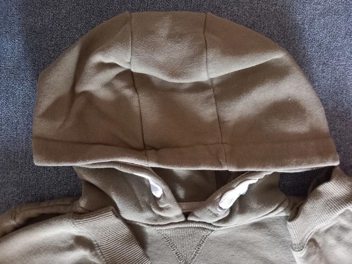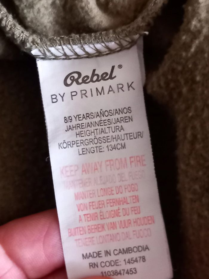 Joli sweatshirt à capuche Marque : Rebel by Primark Composition : 60% Coton, 40% Polyester Taille : 8/9 ans Coloris : Kaki, motif blanc Etat impeccable #carlisle66garçon9ans