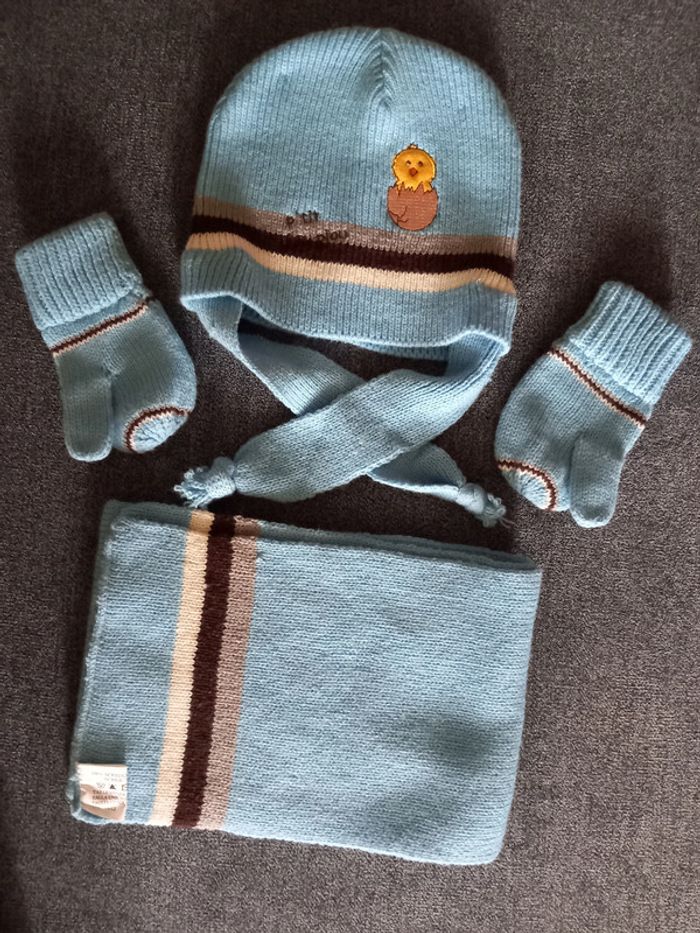 Ensemble Bonnet, Echarpe, Moufles - Ptit Piou Piou