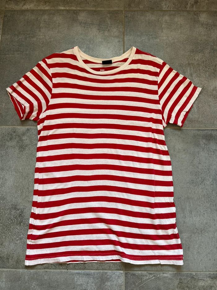 ☀️☀️☀️☀️ NEUF Tee shirt marin Marque H&M Taille S 100 % coton Couleur rouge et beige Dimensions en cm : Carrure 44 cm Aisselle aisselle 51 cm Longueur 74 cm