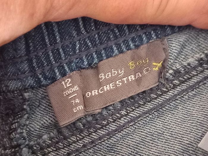 Joli jean Taille : 12 mois Taille élastiquée Coloris : Bleu marine Composition : 100% Coton Marque : Orchestra Etat impeccable #carlisle66garçon12mois