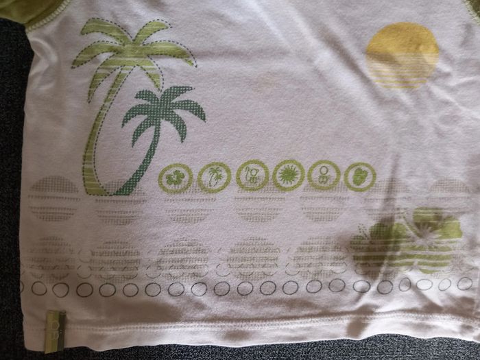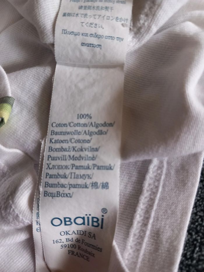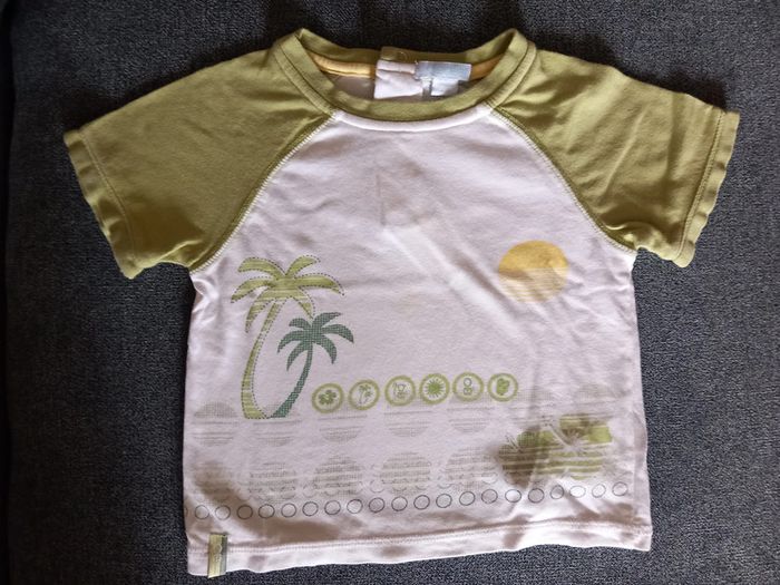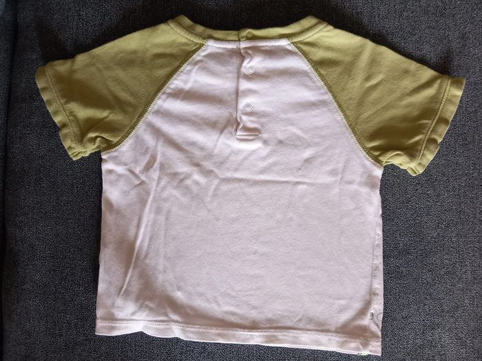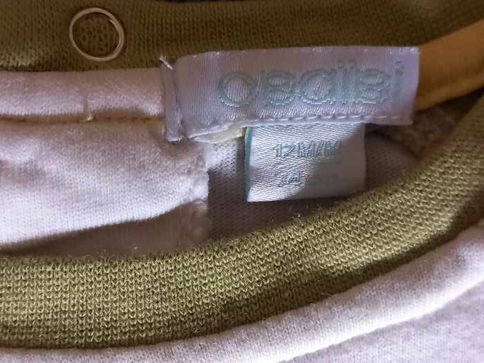 Joli t-shirt Taille : 12 mois Coloris : Blanc et vert anis Fermeture par bouton pression dans le dos Composition : 100% Coton Marques : Obaïbi État impeccable #carlisle66garçon12mois