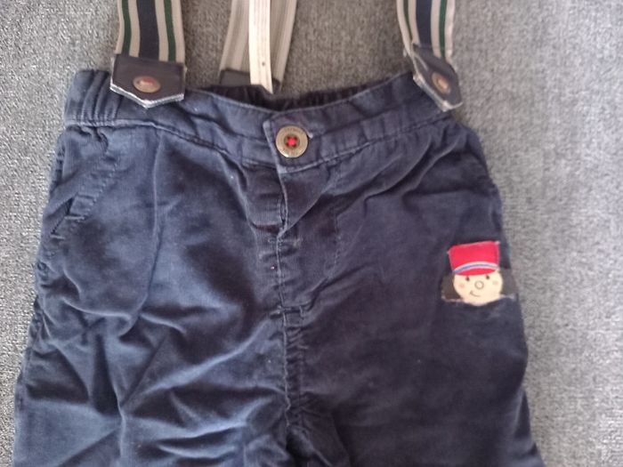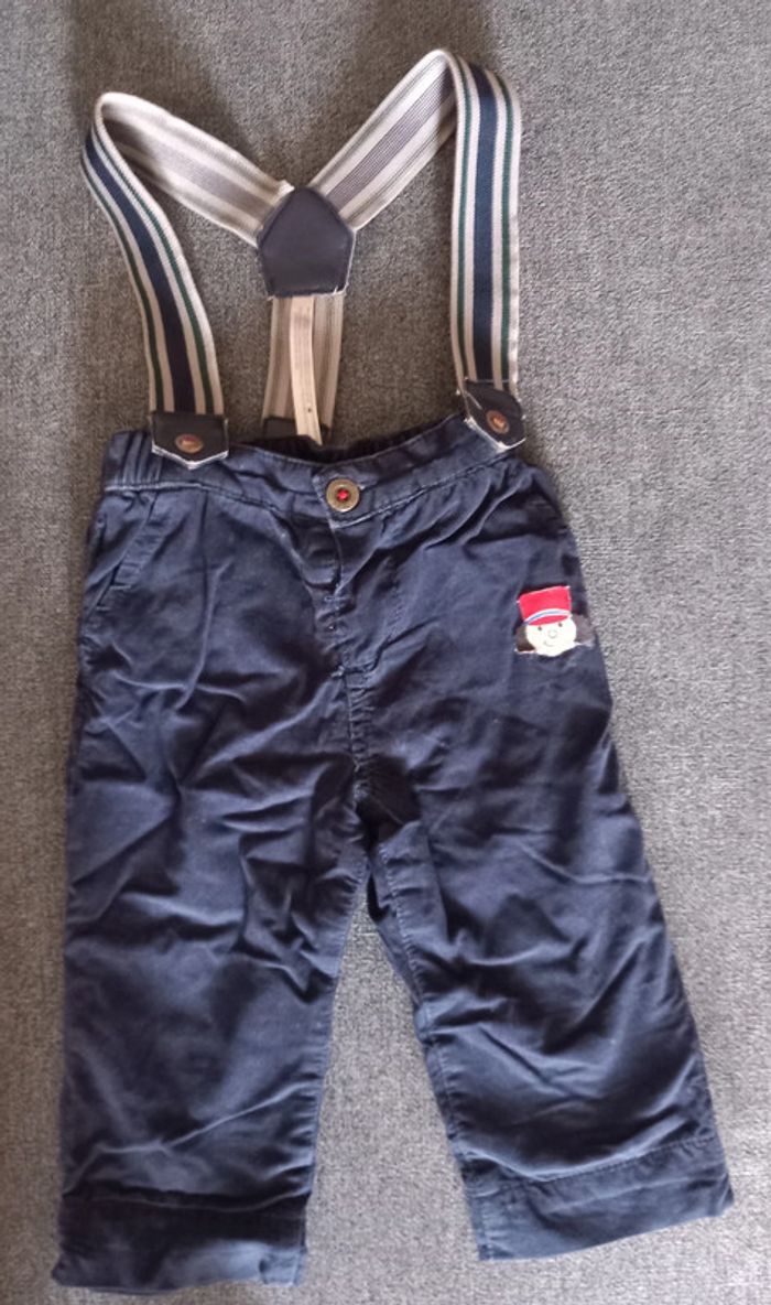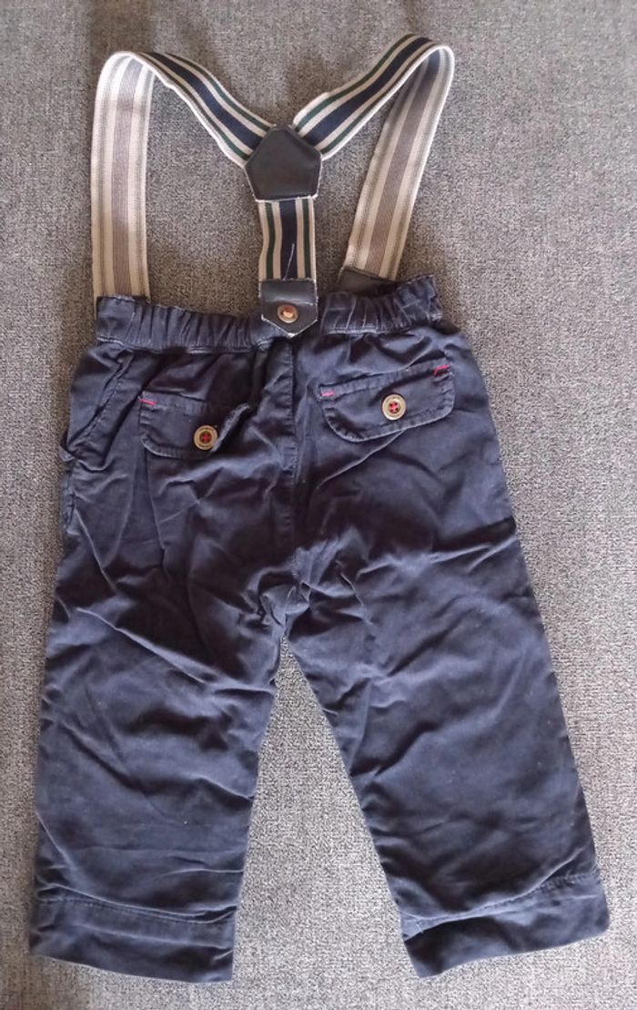 Joli pantalon à bretelles Marque : Sergent Major Taille : 9 mois Coloris : Bleu marine Composition : 80% Polyester, 20% Elasthanne Etat impeccable #carlisle66garçon9mois