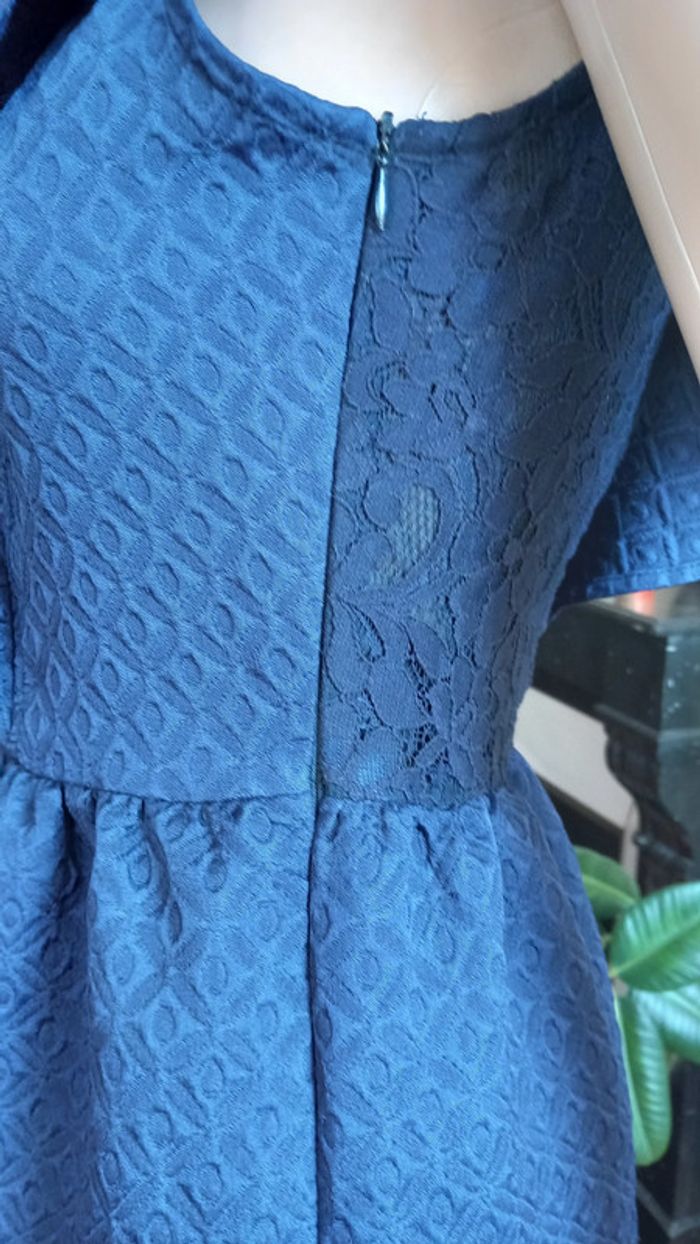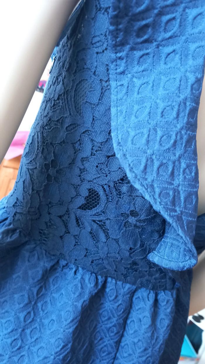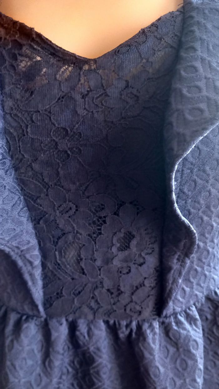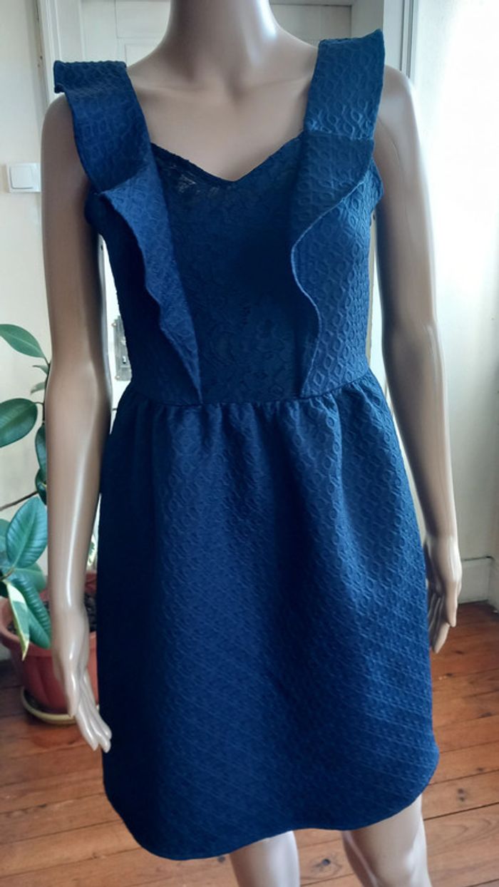 Très jolie robe au décolleté dans le dos Taille : 34 Marque : Naf Naf Coloris : Bleu Marine Taille soulignée, dentelle sur le buste Fermeture zippée invisible dans le dos Etat impeccable #carlisle66femmetaille34