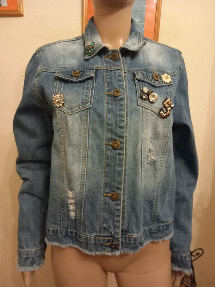 Magnifique veste en jean Marque : Léa & Viola Taille : M/38 Composition : 95% Coton, 5% Polyester État impeccable #carlisle66femmetaille38