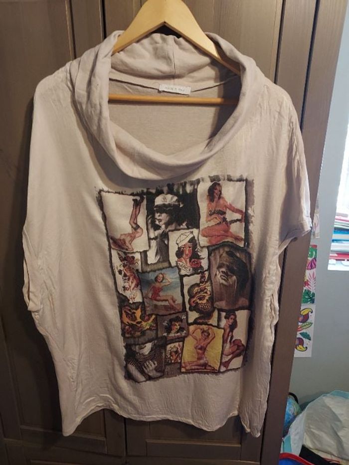 Tee shirt beige avec imprimé TU correspond à un 42 made in italy