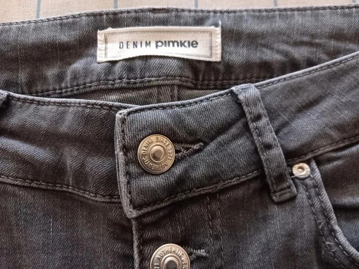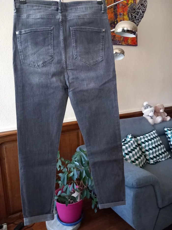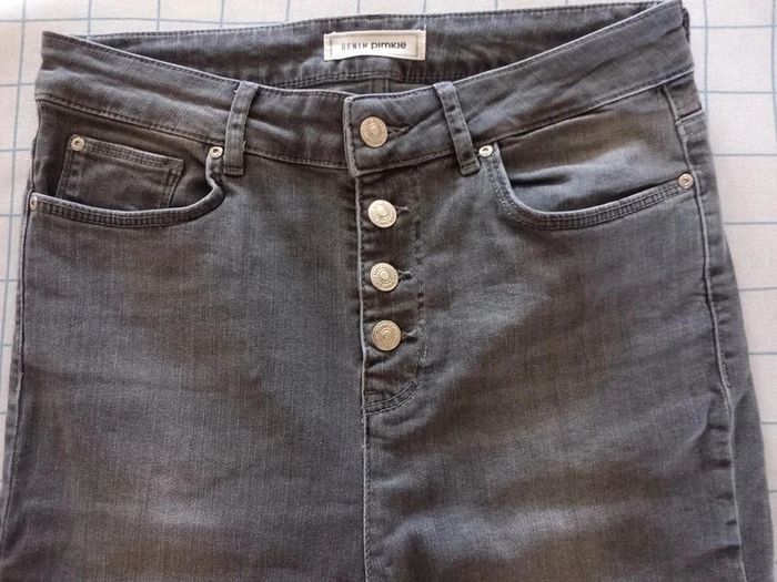 Joli jean à la taille haute Taille : 38 Coloris : Gris foncé Composition : Coton Revers sur le bas des jambes Marque : Pimkie Etat impeccable #carlisle66femmetaille38