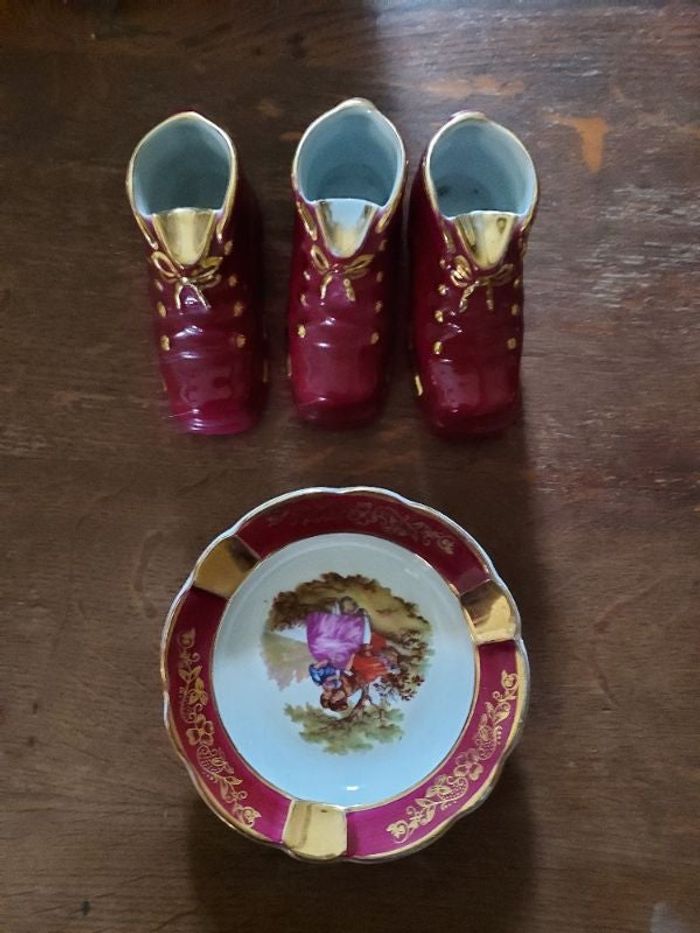 3 cendriers chaussure et un plat en porcelaine de limoge