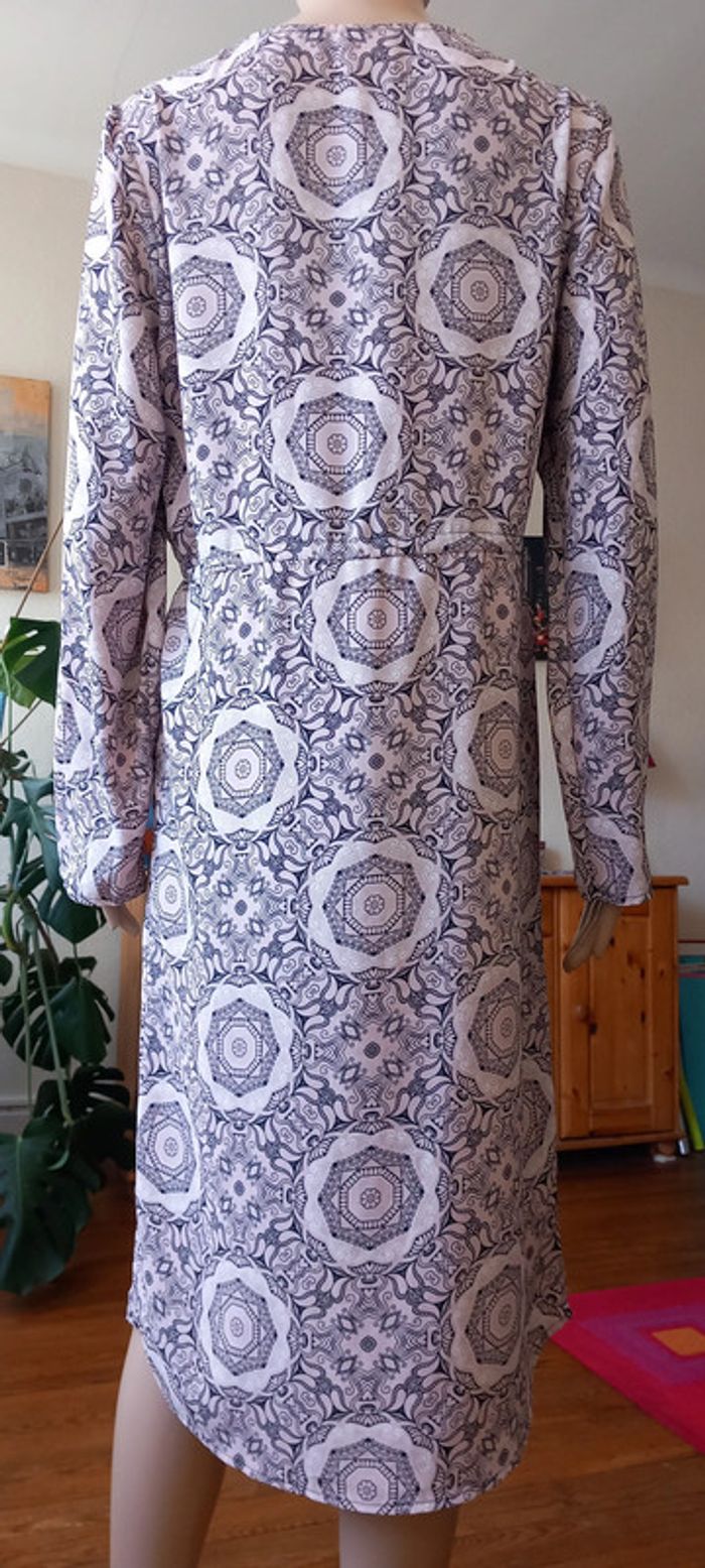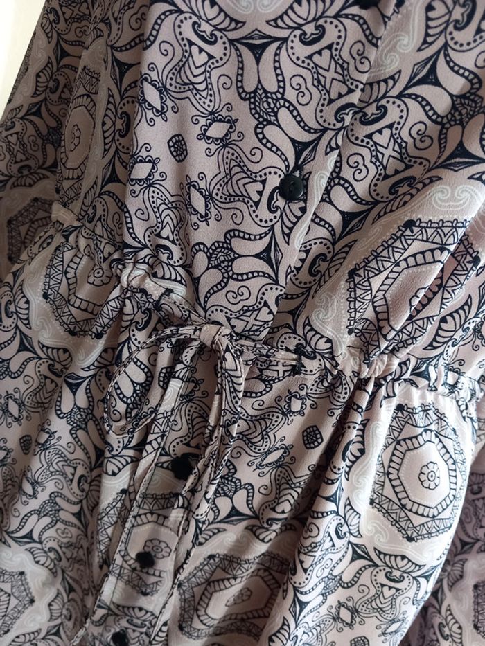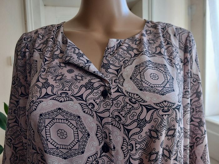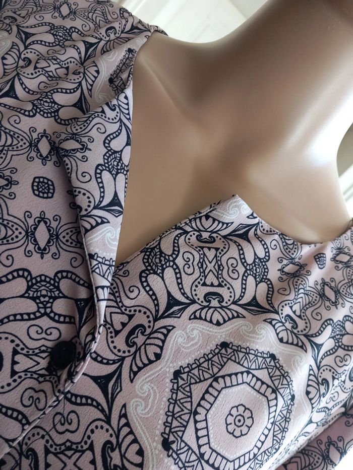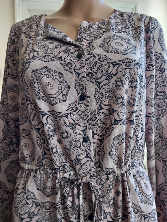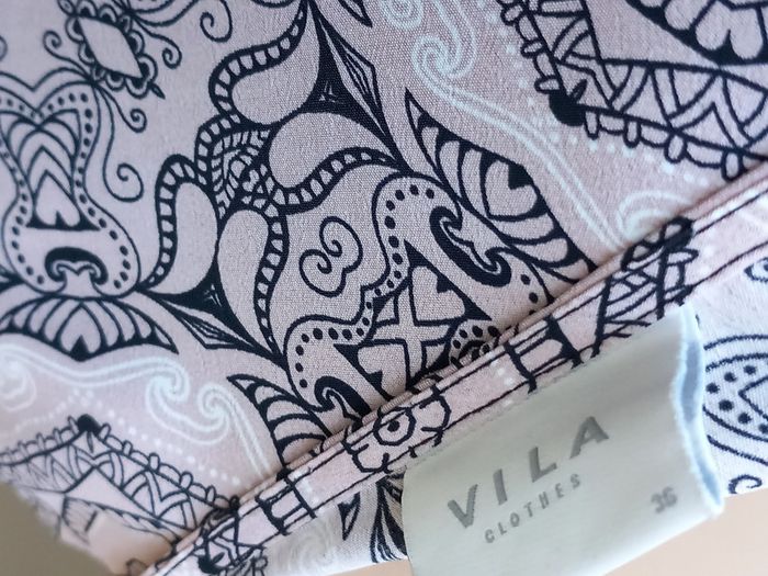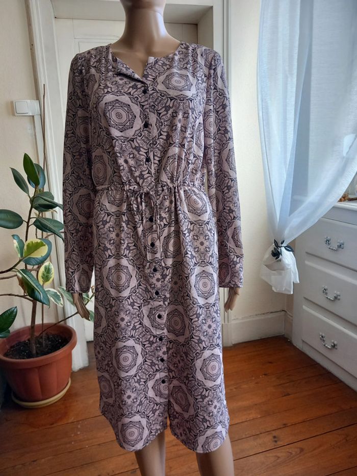 Jolie robe à manches longues Marque : Vila Boutonnée sur toute la longueur Coloris : Noir et Rose Base arrondie devant et dos Taille : 36 Composition : 100% Polyester Lien à nouer à la taille Bouton de rechange cousu sur étiquette État impeccable #carlisle66femmetaille36