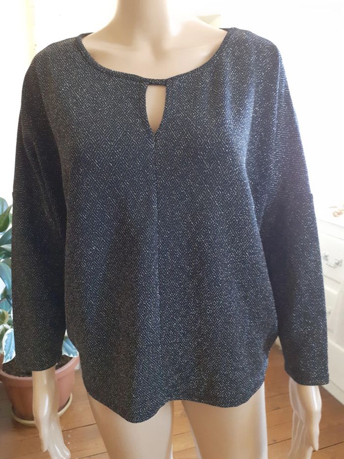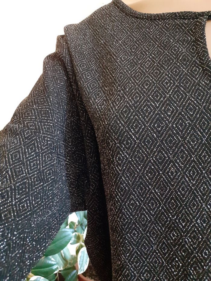 Joli pullover maille argentée Taille : S Marque : Mosquitos Coloris : Noir, fibre argentée Manches chauve-souris Etat impeccable #carlisle66femmetaille36