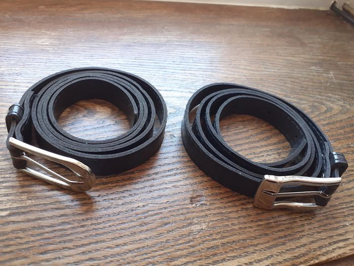 Joli lot de 2 ceintures Coloris : Noir Boucle argentée Longueur : 100 cms Largeur : 1.5 cms Etat impeccable #carlisle66ceinture