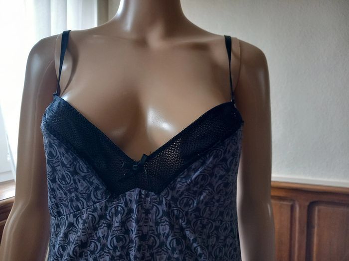 Jolie nuisette Dentelle sur le décolleté Taille : 38 Coloris : Sur fond noir, gris, bleu Bretelles réglables Etat impeccable #carlisle66lingerie