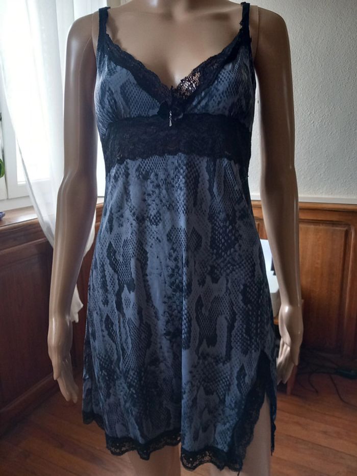 Jolie nuisette Taille : 38 Coloris : Gris, noir Bretelles réglables Dentelle sur le décolleté, soulignement sous-poitrine et le bas Fente sur le bas de la nuisette Etat impeccable #carlisle66lingerie
